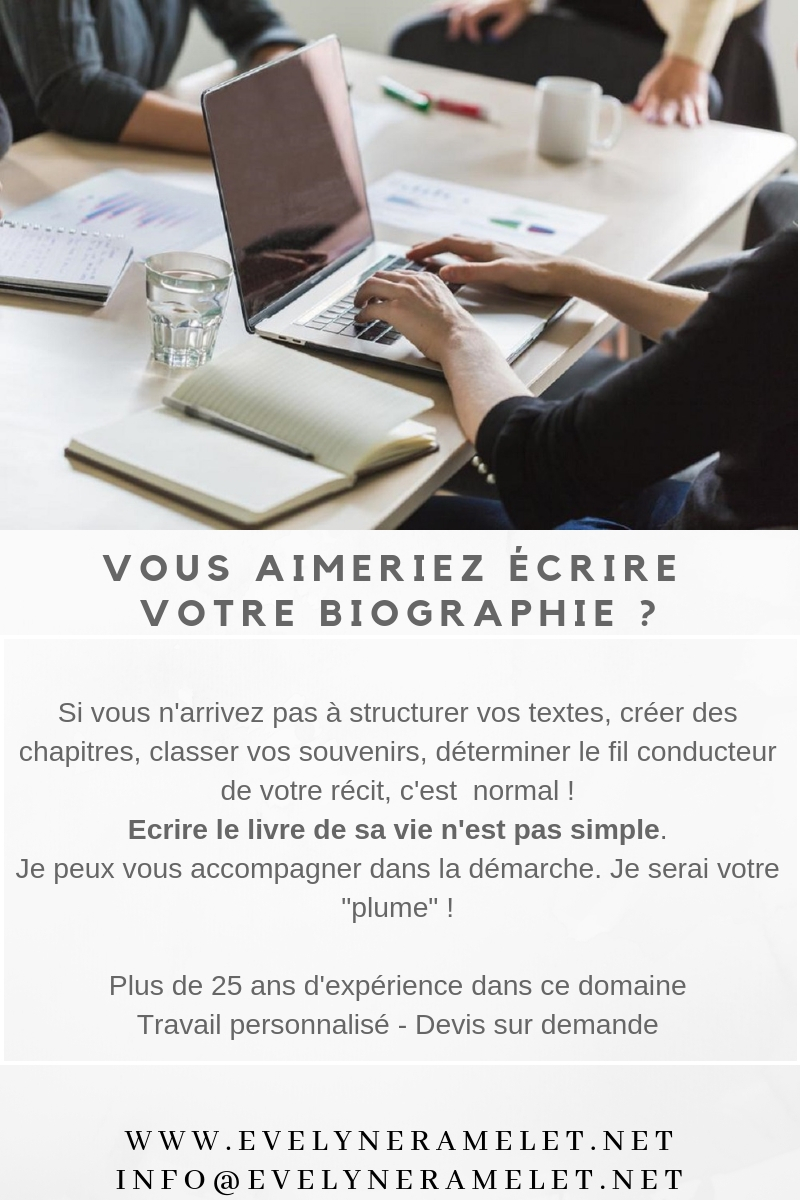 J’écris des biographies depuis plus de 25 ans et je me suis spécialisée dans cette matière qui nécessite une écoute toute particulière des protagonistes, une compréhension particulière de l’âme humaine et aussi une bonne expérience du monde actuel.